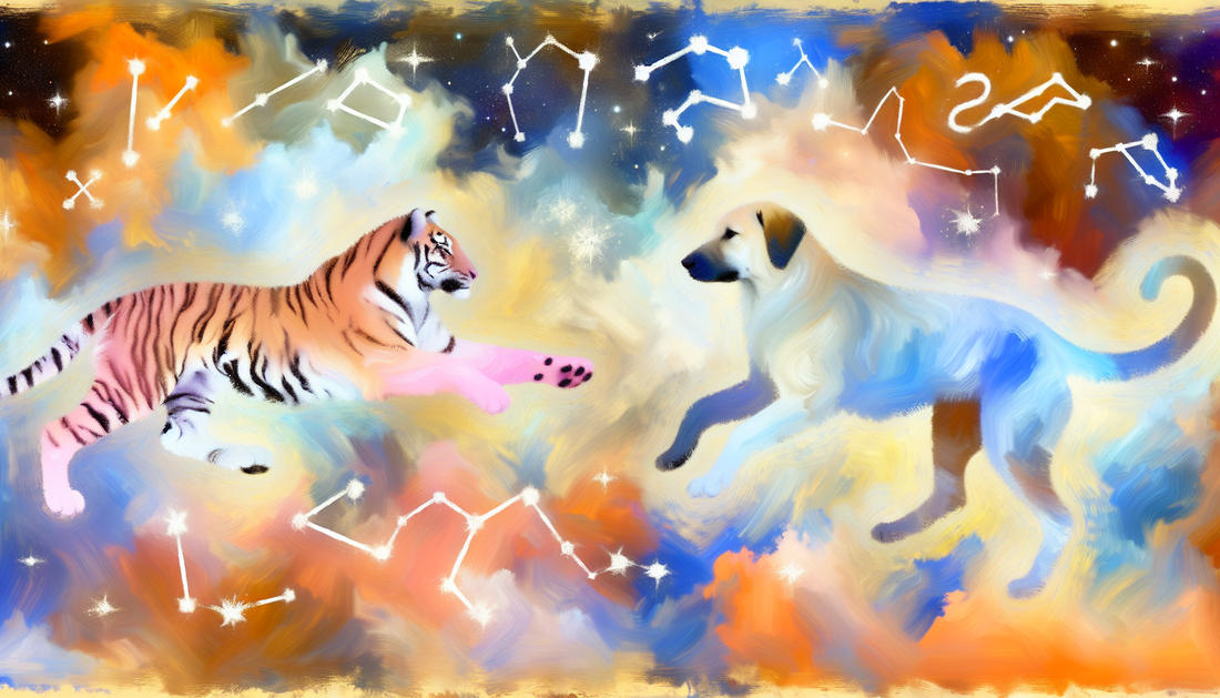 Тигр і Пес у китайській астрології продовжують захоплювати серця своїм цікавим поєднанням рис, роблячи їх сумісність справжньою захопливою подорожжю для вивчення. Кожен знак має свої унікальні сили та особливості, які чудово формують їхні взаємини. Тигр, відомий своєю сміливою незалежністю та життєвою енергією, поєднується з вірністю та турботливим характером Пса. Це динамічне поєднання створює стосунки, наповнені теплом, захопленням і можливостями для зростання.